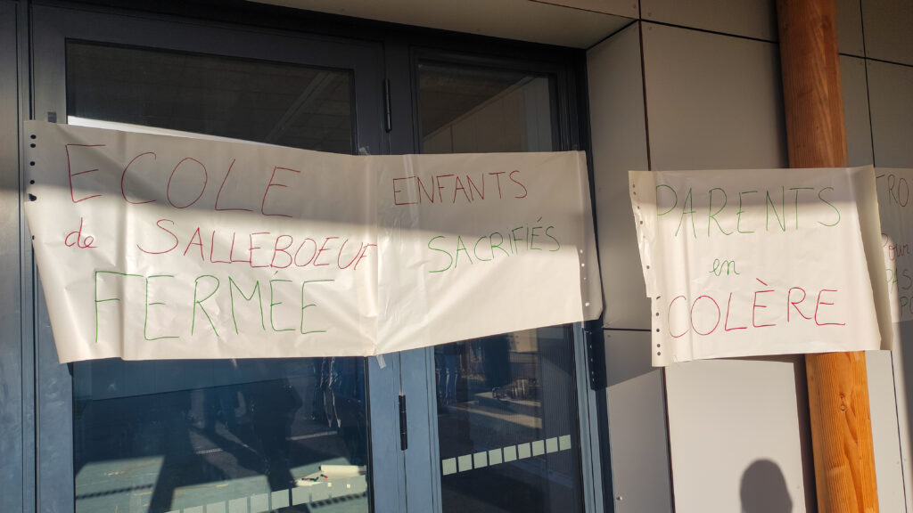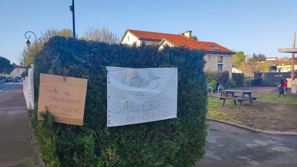 Rassemblement d’enseignants et de parents devant l’école de Salleboeuf