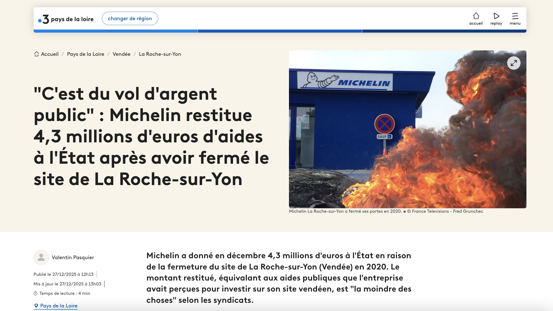 Après avoir bénéficié de 65 millions d’euros d’APE au moyen du CICE entre 2013 et 2018, dont 4,3 millions pour ce site, Michelin a annoncé la fermeture de ce site et sa délocalisation en Roumanie et Pologne. Ainsi le bénéfice d’argent public doit être associé à des conditions en matière d’emploi, de délocalisation et d’environnement, les français n’ont pas à financer les pratiques prédatrices de certaines grandes entreprises.