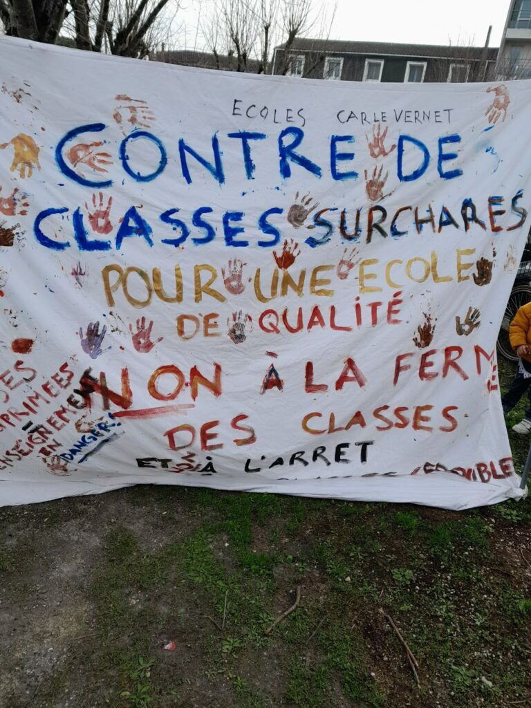 Ce mardi 18 février, l’équipe parlementaire dont Lionel Chollon, professeur des écoles et député suppléant, était en manifestation auprès des syndicats de l’éducation nationale contre la fermeture des classes en Gironde.
