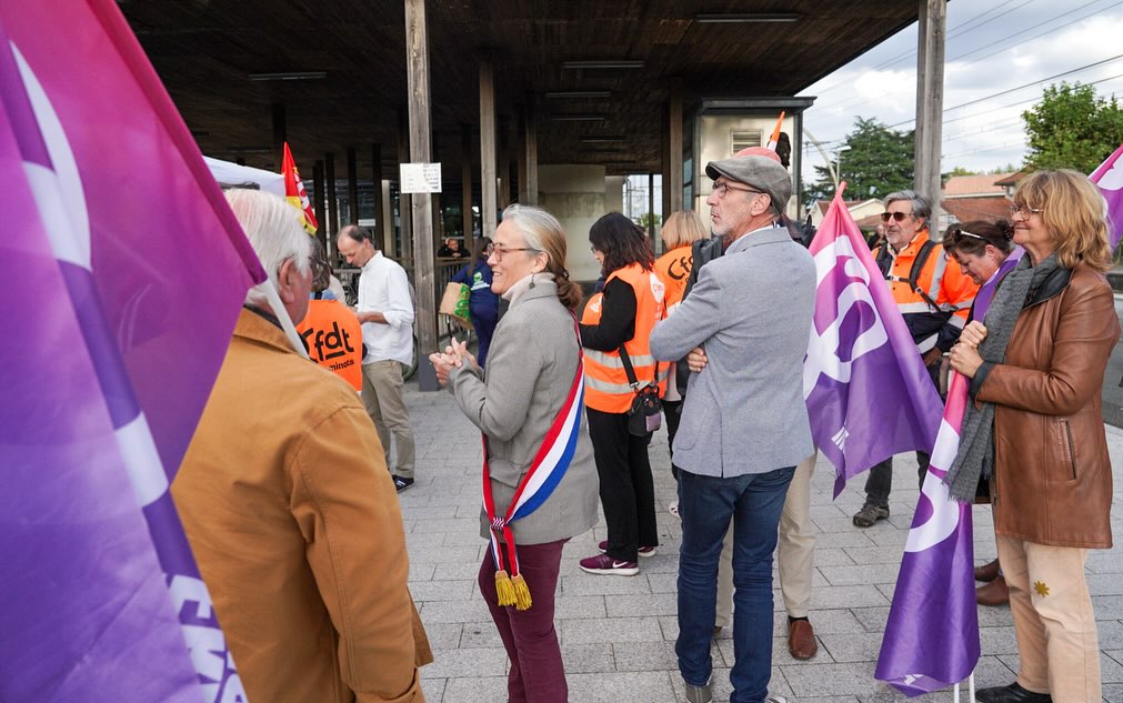 Tous.tes rassemblé-es ce vendredi soir à la gare de Pessac pour réclamer le maintien des guichets physiques dans nos gares.
