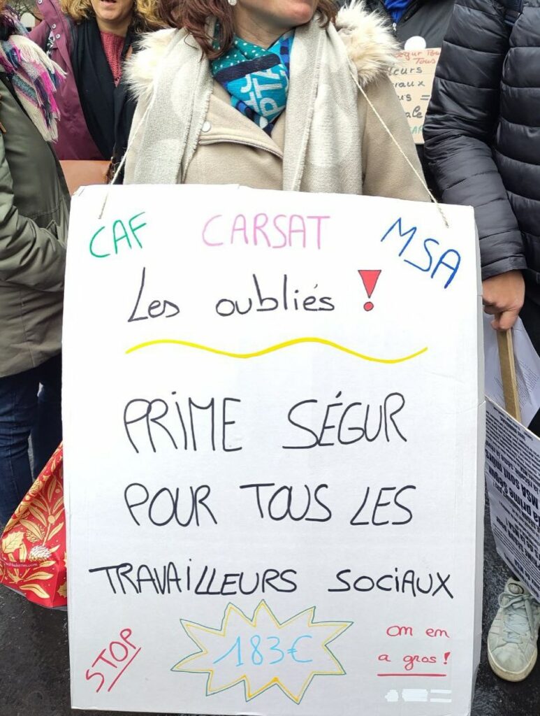 J’étais ce 29 Janvier à la manifestation des oublié.e.s du Ségur. Les travailleuses et travailleurs sociaux des caisses de sécurité sociale, de la Caisse d’allocations familiales (CAF), la Mutuelle sociale agricole (MSA) et la Caisse d’assurance retraite (Carsat) réclament de ne plus être exclus de la prime Ségur.